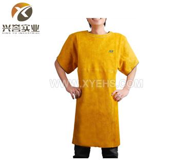 炭啡色牛二层芯皮全皮护胸围裙,专为保护前身设计,方便实用。