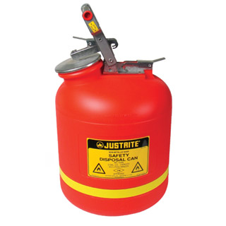 JUSTRITE液体废弃物安全罐由高密度聚乙烯材料制作而成,具有优良的抗化学药品和防漏性能。盖子上的把手的固定位置时期能够保持敞开以方便注入。在关闭状态下,压强为3-5磅/平方英寸时,盖子会自动通风。消焰器有效预防外部引燃。不锈钢钢针对腐蚀品提供最大的防护。