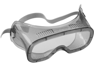 透明PC防冲击护目镜,柔韧的PVC镜体,弹性织物头带,直接通风设计。