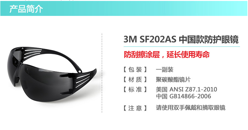 产品名称:3M SF202AS灰色防刮擦防护眼镜
