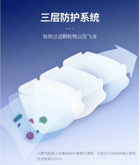 三层防护,有效过滤颗粒物以及飞沫;
